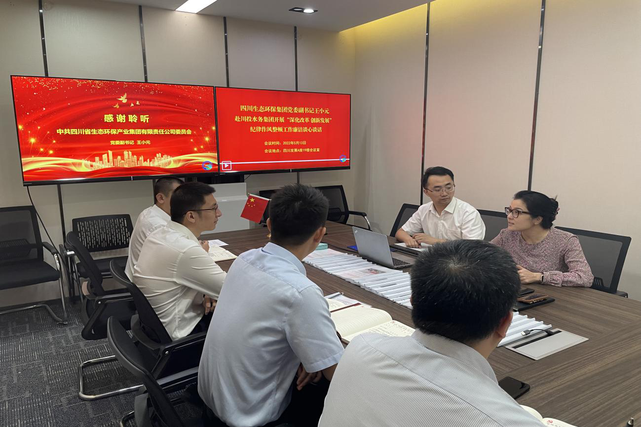 专项督导检查中,四川生态环保集团党委副书记王小元首先现场查阅了PA视讯集团近期“深化改革、创新发展”纪律作风整顿工作的相关资料,并召开现场座谈会。会议中,PA视讯集团副总经理谭卫鹏就公司“深化改革 创新发展”纪律作风整顿相关工作开展情况进行了详细汇报,王书记对PA视讯集团近期“深化改革 创新发展”纪律作风整顿工作开展成效给予了充分肯定,并对下一阶段性的工作提出具体要求,同时,还对部分领导干部开展了廉洁谈话。