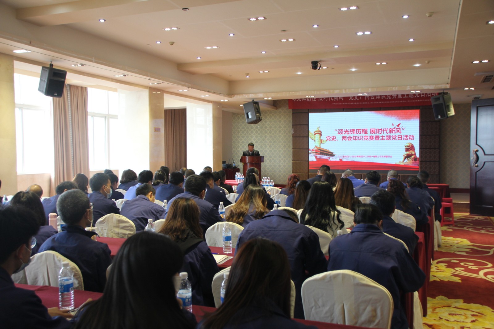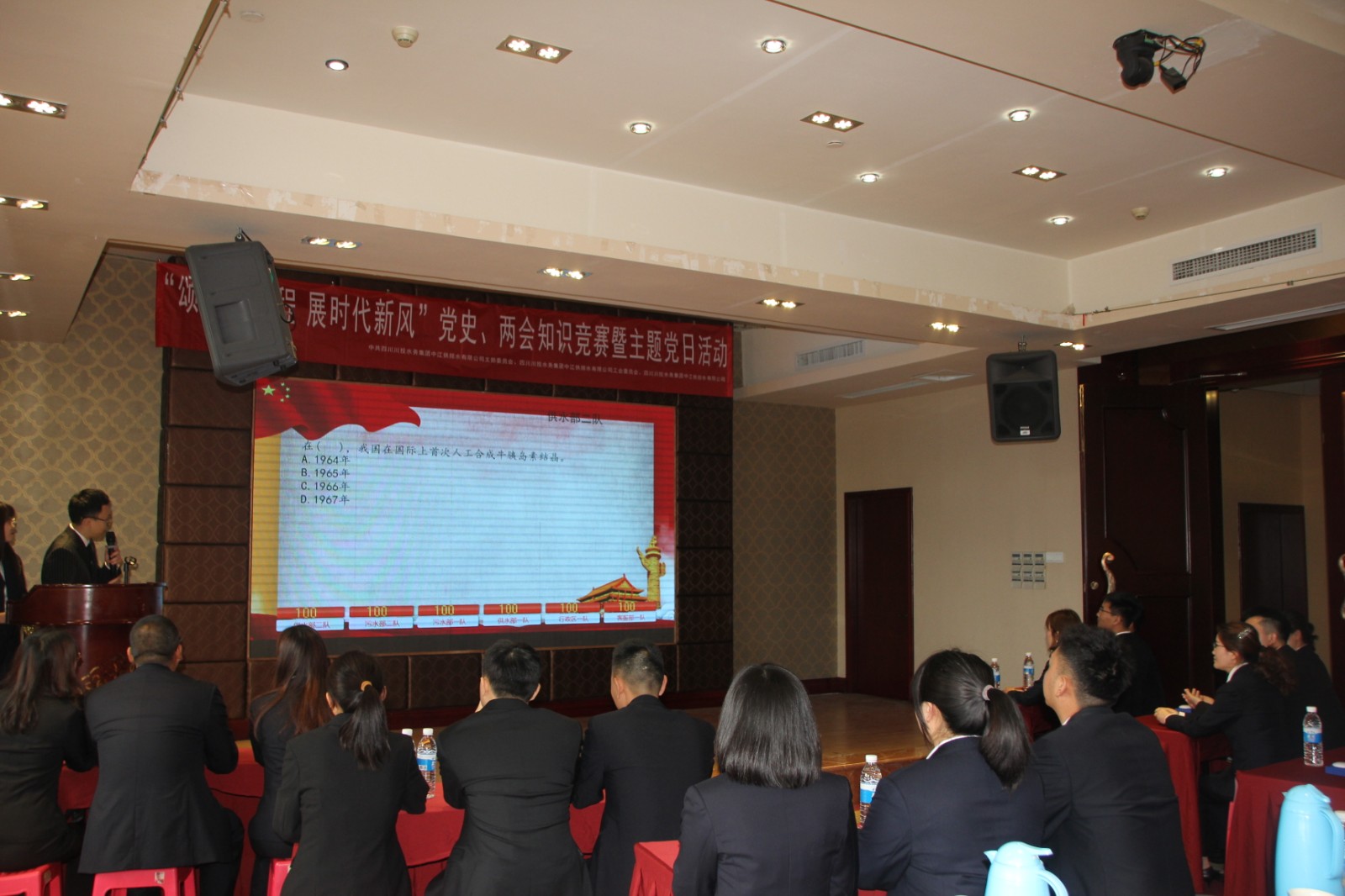 4月25日下午,中江水司组织开展“颂光辉历程,展时代新风”党史、两会知识竞赛暨主题党日活动。公司90余名党员干部职工参加了此次活动。