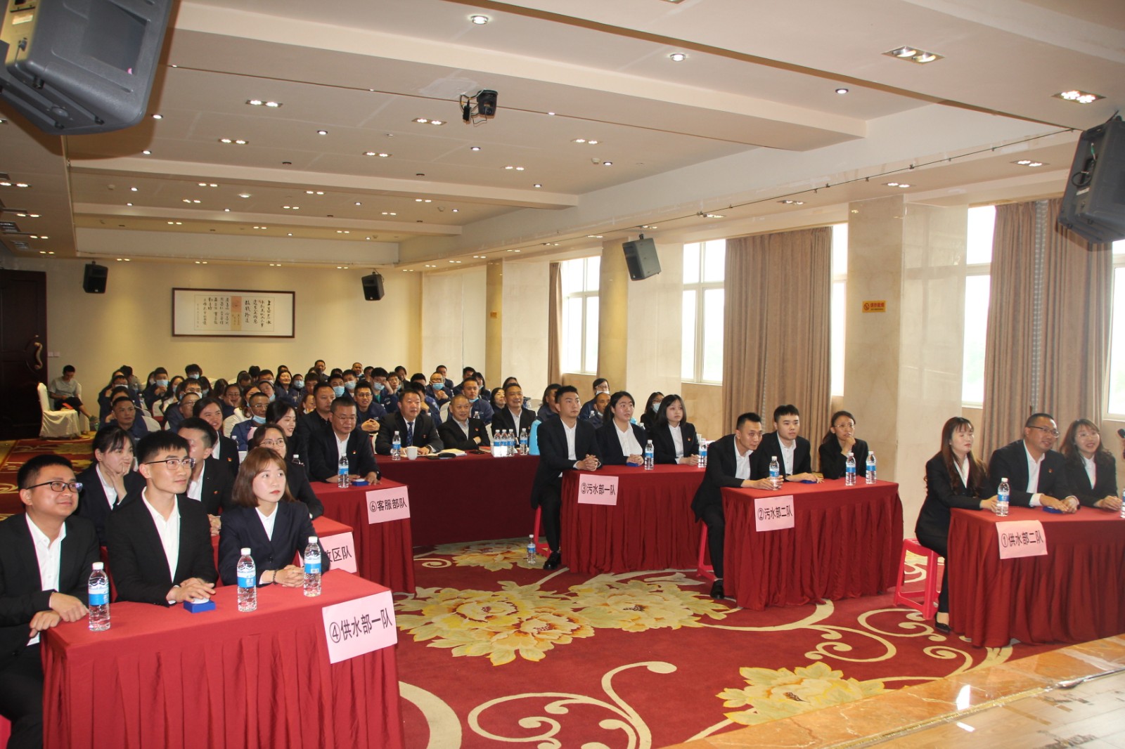 随后,为庆祝建党100周年,重温中国共产党光辉历程,进一步激发公司党员干部职工的爱党、爱国、爱岗热情,坚定共产主义理想信念,提升全体党员干部职工的思想政治觉悟和党性修养,不断增强工作、学习的责任感和使命感,营造推动公司又好又快发展的良好氛围,促进党史学习教育的深入开展,“颂光辉历程 展时代新风”党史、两会知识竞赛活动在党支部书记朱禹同志的致辞后拉开了帷幕,本次竞赛活动每队3人,共分为供水部一队、供水部二队、污水部一队、污水部二队、行政区队、客服部队6个队伍,题型有必答题、抢答题、限时题及风险题,在比赛末还穿插了观众互动环节。在竞赛现场,各队选手面对主持人的提问积极回答、沉着应对。必答题环节选手稳扎稳打,敏捷思考;抢答题环节现场气氛紧张激烈,各队选手拼反应,拼积累,互不相让;风险题环节各代表队结合当前的分数,谨慎选题,凝聚知识,小心作答。经过几轮激烈角逐,本次活动共评选出一、二、三等奖、团体优秀以及最佳表现奖。
