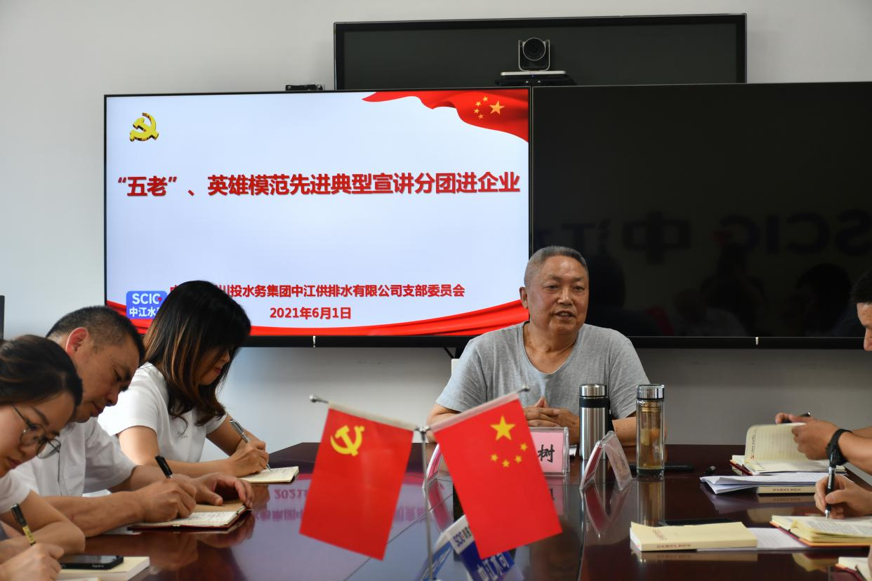 活动邀请了现年75岁的退伍老兵刘弟树作《学党史 跟党走 红色精神永传承》党史宣讲,刘老结合自己的亲身经历,用朴素的语言,讲述了党的历史上发生的重大事件,细数了中国共产党一百年以来的辉煌成就,宣讲数据详实、内容饱满,具有政治高度、理论深度,又有历史厚度、情感温度,刘老殷切叮嘱在场的党员干部,要在党史学习教育中不断夯实供排水服务的初心,以实际行动践行好“为人民服务”的宗旨。