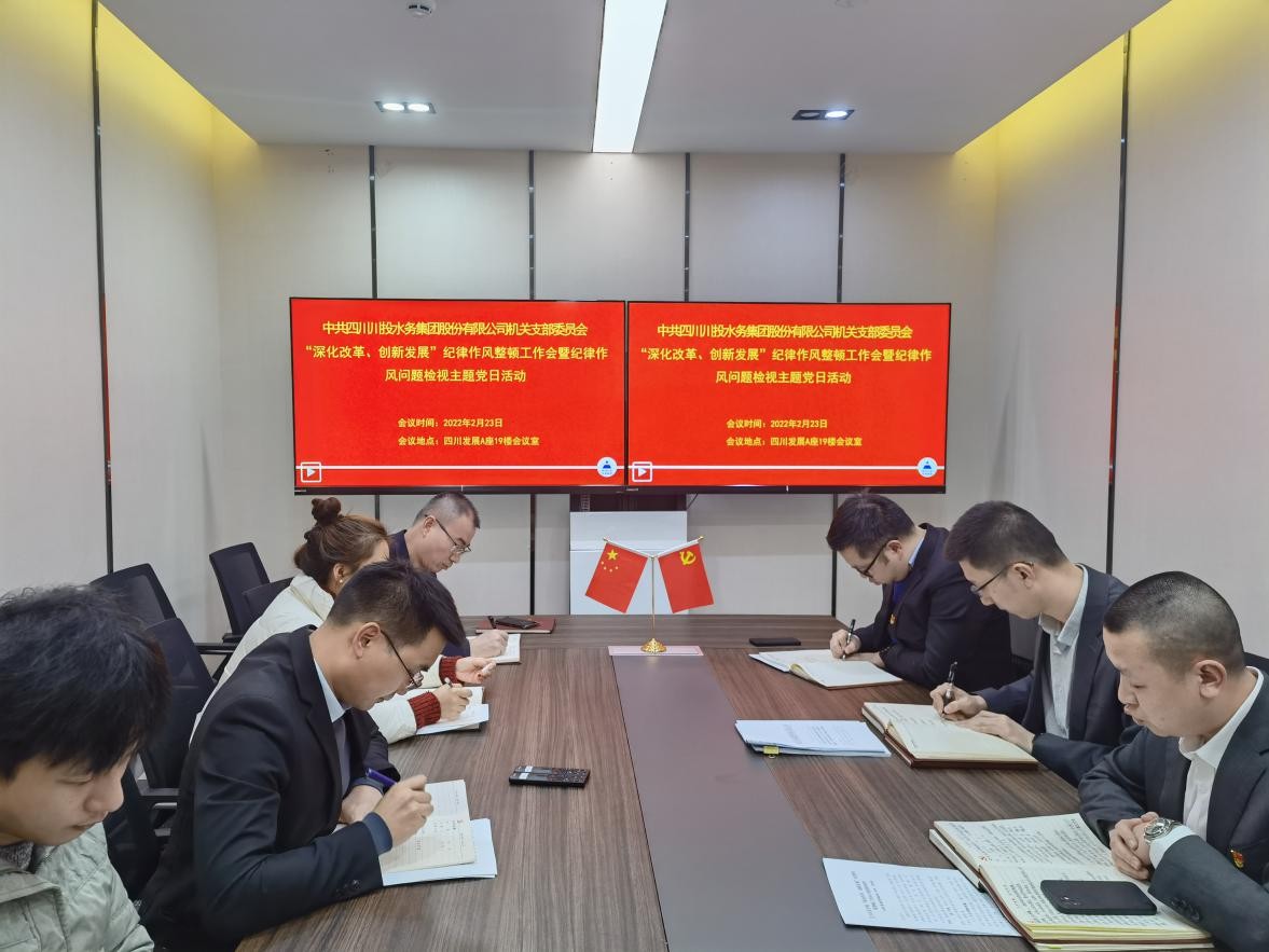 2022年2月23日,PA视讯集团机关党支部为全面贯彻落实四川发展党委《关于开展“深化改革、创新发展”纪律作风整顿工作的通知》要求,进一步增强队伍凝聚力和战斗力,优化发展环境,切实助推企业实现高质量发展,机关党支部通过主题党日活动的形式,组织召开“深化改革、创新发展”纪律作风整顿工作会暨纪律作风问题检视会。