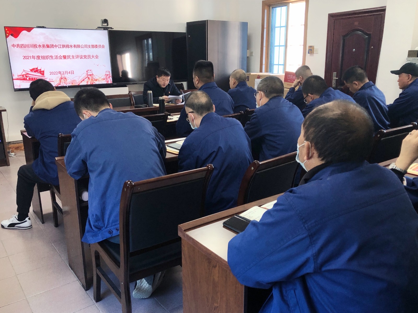 2022年3月4日,中江水司党支部组织召开2021年度组织生活会暨民主评议党员大会。会议由党支部书记、董事长、总经理朱禹主持,支部20名党员同志参加会议。