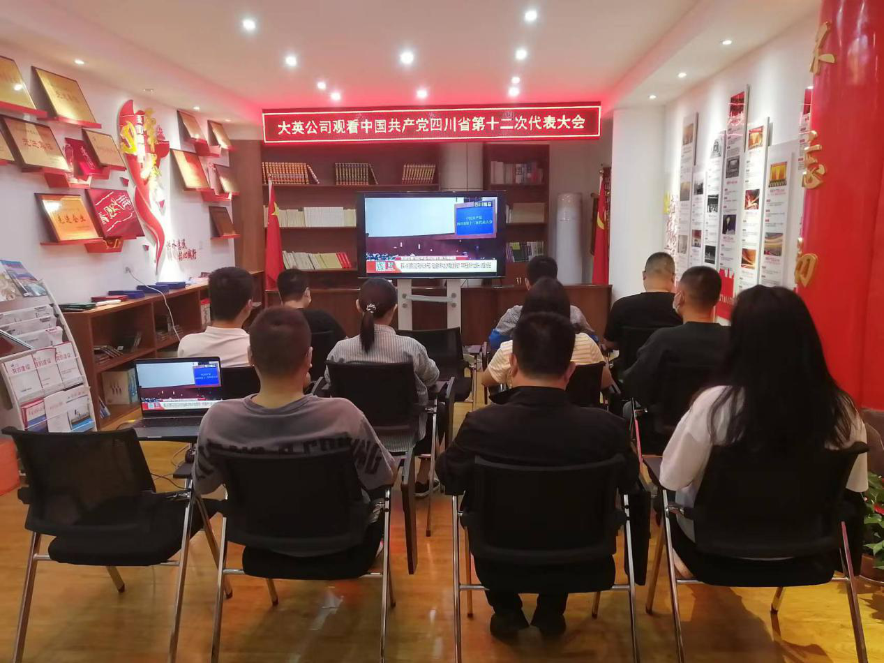 中国共产党四川省第十二次代表大会于5月27日在成都胜利召开。大英公司党支部组织部分党员进行了集中观看,其他干部职工也纷纷通过手机、电视等多种形式收听收看开幕式。
