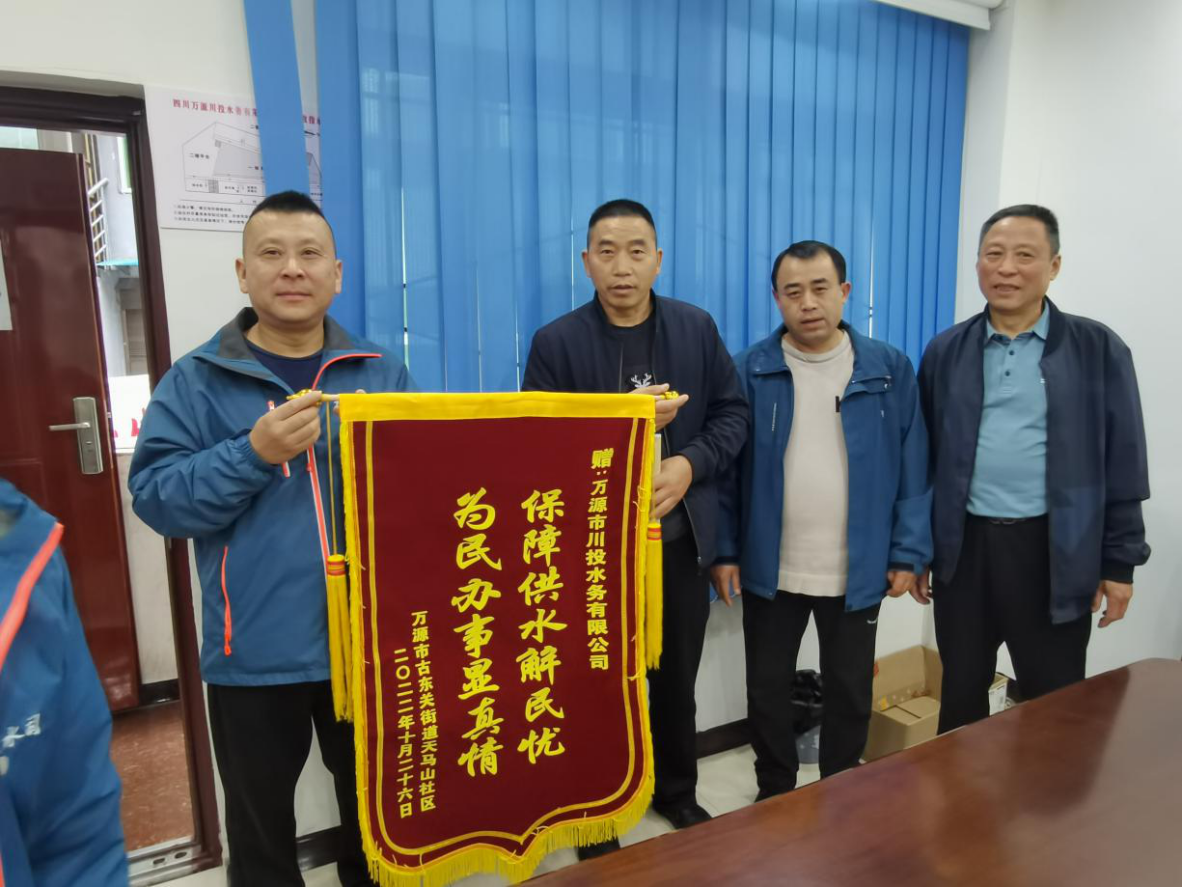 这面锦旗是对企业工作的认可,更是一种鞭策,在今后的工作中,我们将继续秉承“安全优质供水,用心服务社会”的企业理念,不断提高供水管理和服务水平,让群众喝上安全水、放心水、优质水。