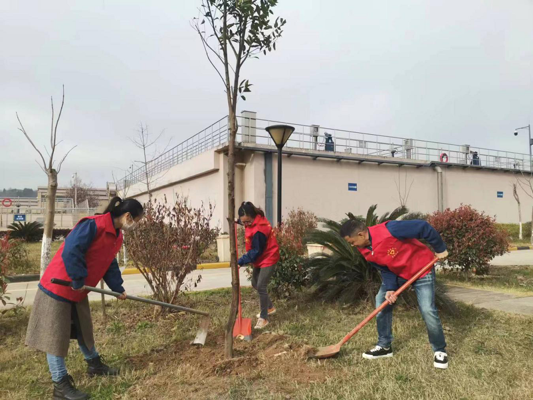 上午9时,在经开区污水处理厂,植树活动正式开始。大家在绿化种植专业人员的指导下,分工合作、干劲十足,或回锹铲土、或扶苗填土、或踩实浇水,整个植树现场呈现出一片热火朝天的景象,每个环节配合默契,每道工序有条不紊,严格保证摘种的质量,努力确保摘植一棵、成活一棵、绿化一片,经过1个小时的辛勤劳动,十余株树苗摘植完成。