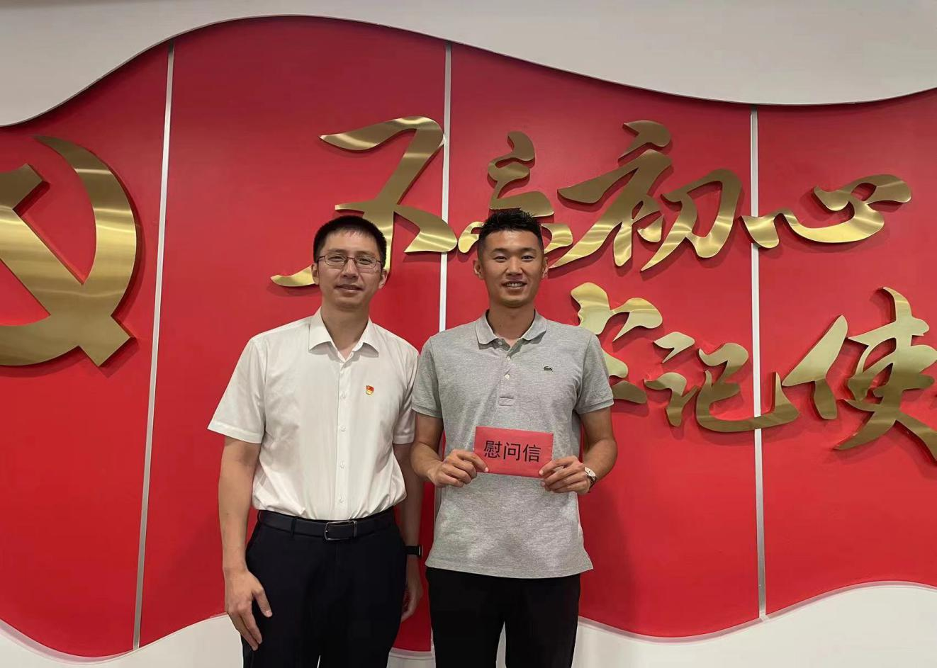 李宁江同志是PA视讯集团本部的一名退伍老兵,于2010年12月参军入伍,2010年12月至2012年12月在公安武警重庆市消防总队九龙坡支队杨家坪中队服役,2012年12月调动至公安武警四川省消防总队资阳支队乐至大队,任命为抢险班班长。2013年10月,因参加资阳安岳县“7.9”特大洪灾战斗中表现突出,荣立个人“三等功”。公司党委委员、副总经理严斯亮谨代表公司党委为他送上了节日的祝福和慰问信,希望他能够将军人的优良作风,延续到今后的工作和生活中去,发光发热,再立新功。