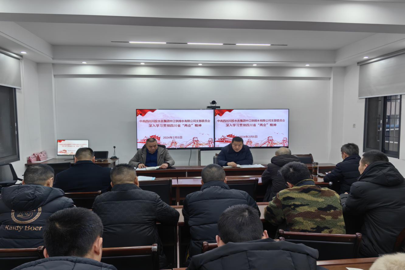 2月5日,中江水司召开会议,深入学习贯彻四川省“两会”精神。会议由党支部书记朱禹主持,公司班组以上管理人员、各部门员工代表参加了会议。