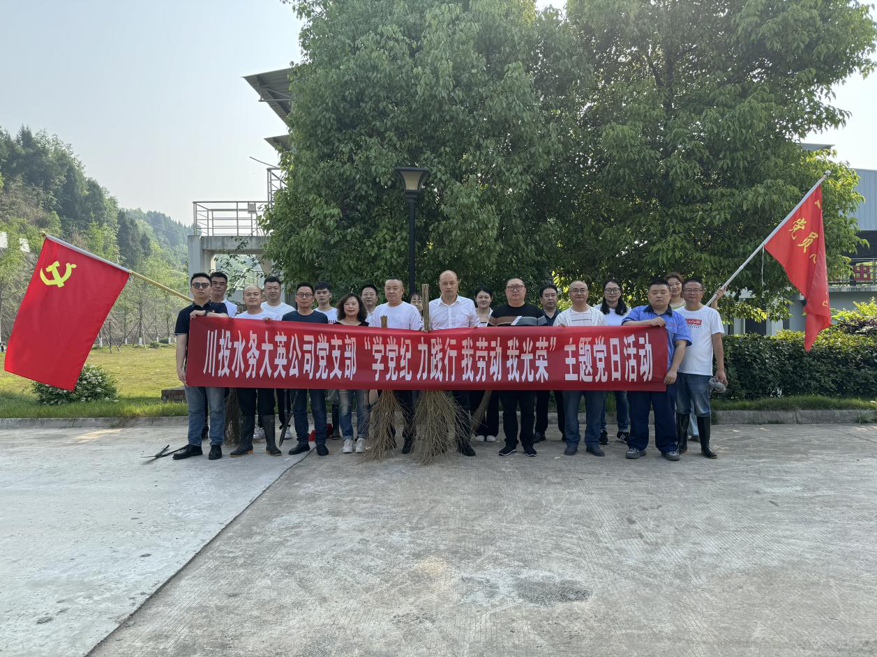 4月28日上午,PA视讯大英公司党支部组织全体党员、青年职工代表,在公司新苗水厂厂区开展“学党纪 力践行 我劳动 我光荣”主题党日活动。PA视讯大英公司党支部书记、执行董事、总经理王文川主持并参加劳动。