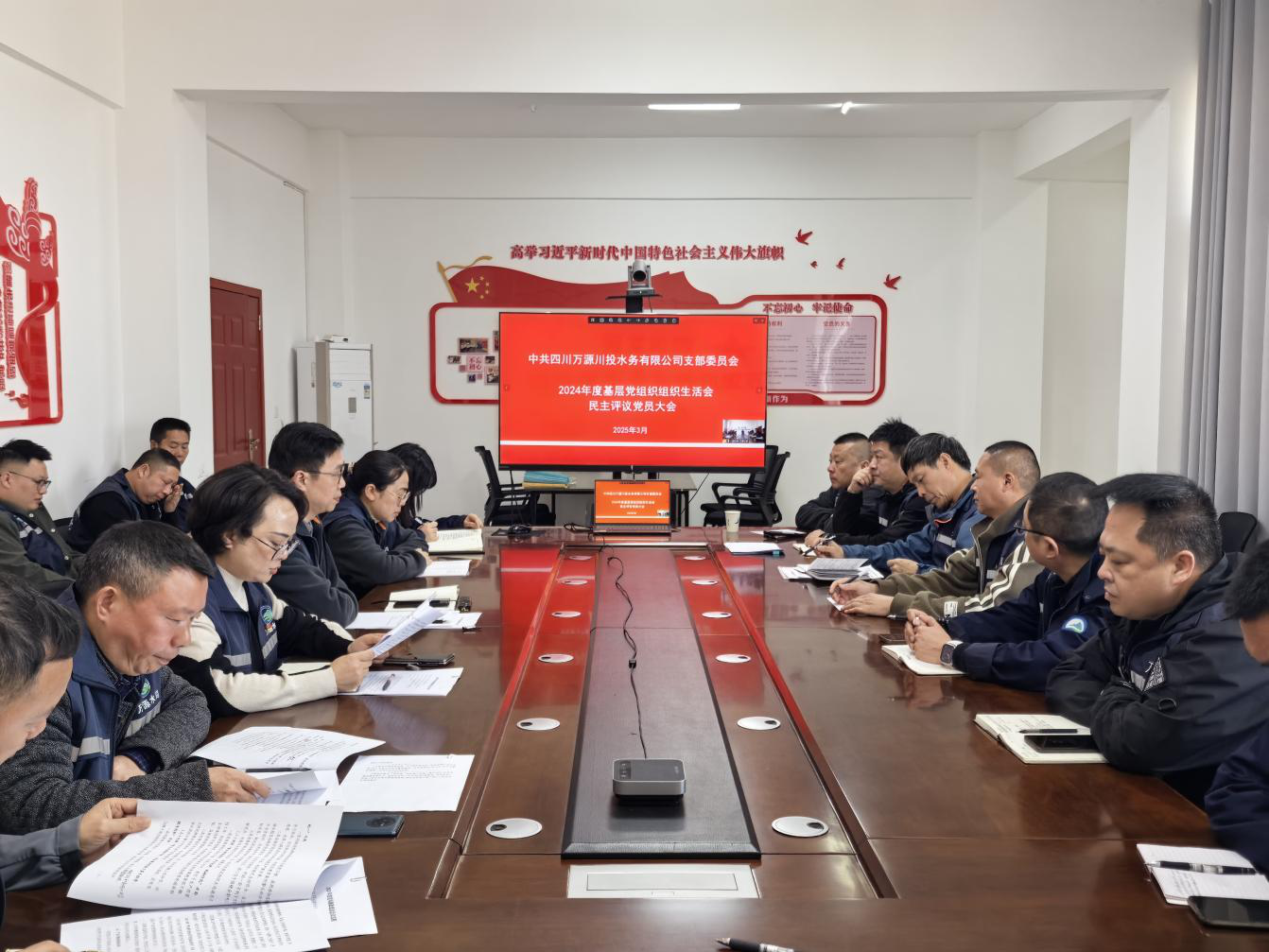 3月26日上午,PA视讯万源公司党支部召开2024年度基层党组织组织生活和民主评议党员大会,全体党员参加会议,支部组织委员、副总经理胡兵主持会议。