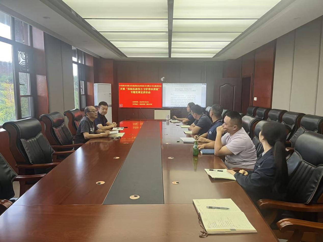 在中国人民抗日战争暨世界反法西斯战争胜利80周年之际,南充公司党支部组织开展“汲取抗战伟力守护碧水清流”专题党课活动。党支部书记杨旭东同志主持宣讲,全体党员干部、中层管理人员及重点岗位人员参加学习。