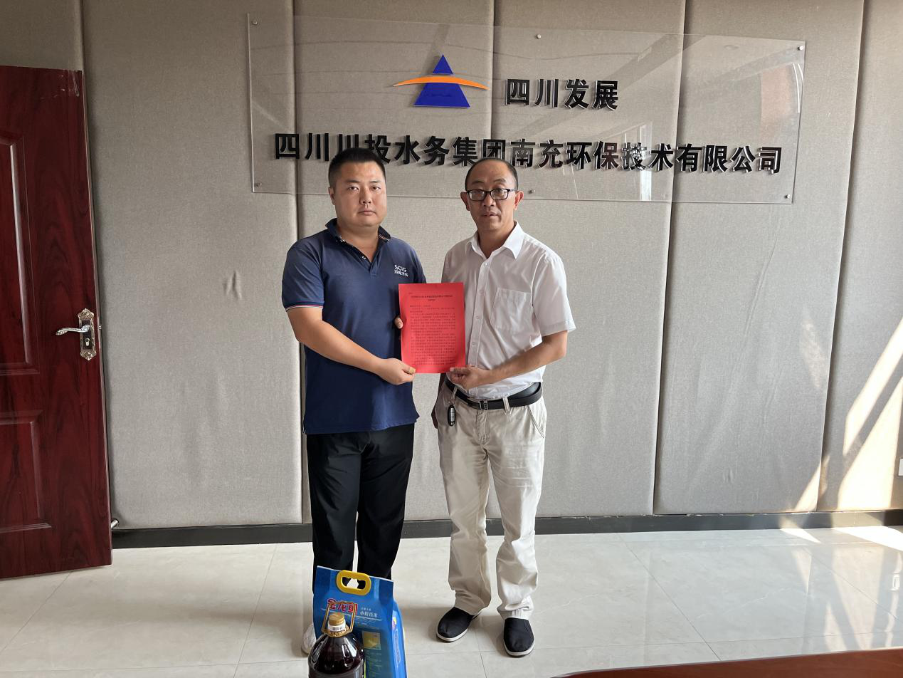 2022年7月29日,在第九十五个建军节来临之际,南充环保总经理杨旭东在公司综合楼三楼会议室组织在岗员工对公司退役军人开展慰问活动。