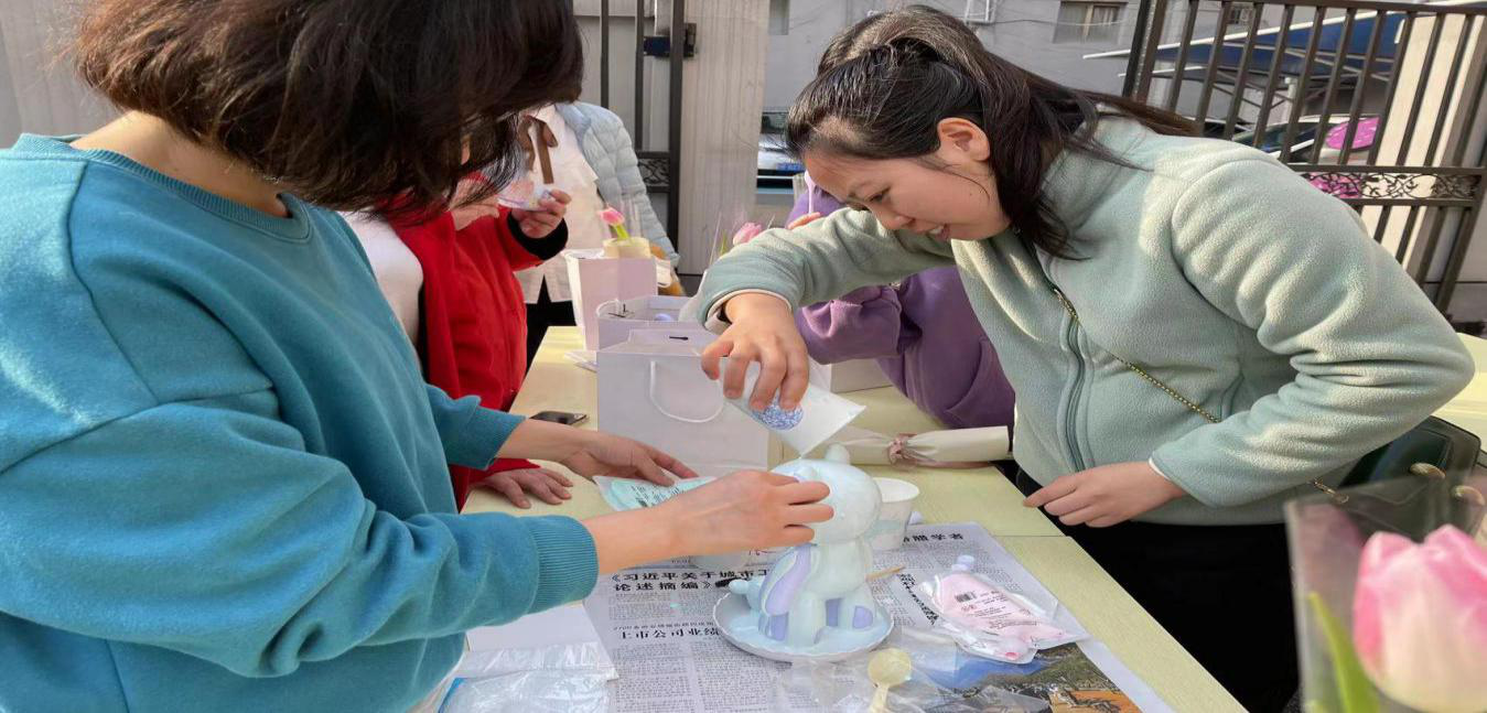 活动现场,每位女职工领取了一支小熊白坯,用自己喜欢的颜料、发挥自己的奇思妙想来DIY专属于自己的流体熊。女职工们在尽情挥洒颜料中释放压力,感受艺术创作乐趣同时,品尝美味糕点冷餐,满足味蕾,为生活加点甜。活动结束时,每位女职工领取了工会精心准备纪念品和鲜花。