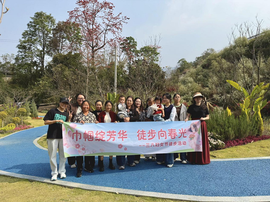 活动当日春和景明,草木萌发,步道沿途鲜花点缀,景色宜人。活动伊始,公司领导向女同胞致以节日问候,充分肯定她们在岗位上的贡献与努力,随后宣布徒步正式开始。大家精神饱满、有序前行,或结伴畅谈,分享工作与生活点滴;或与家属携手同行,在互动中增进感情。途中,大家既驻足欣赏春景、拍照留念,也在陡坡路段互帮互助、彼此鼓励,展现出团结协作、积极向上的巾帼风采。工作人员全程跟进,做好路线指引、物资补给等保障工作,确保活动安全顺利开展。