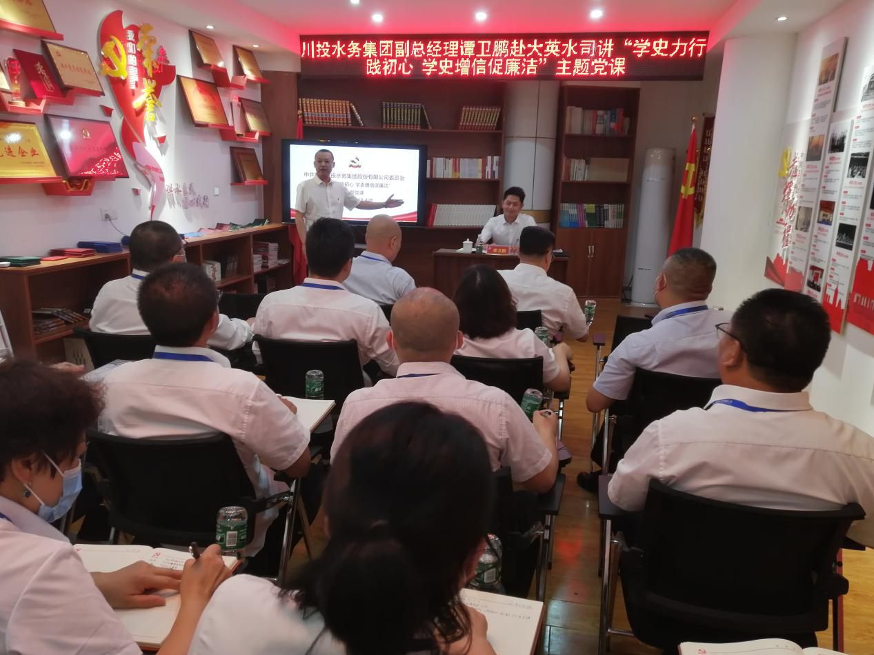 4月24日,为深化党风建设,加强廉政建设,坚守党风建设底线,弘扬清风正气,PA视讯集团副总经理谭卫鹏、党群纪检工作部部长李至彬等一行到大英水司党支部讲授主题党课。PA视讯大英水司党支部书记、执行董事、总经理王文川,副总经理、工会主席王洪先及全体党员干部参会学习。
