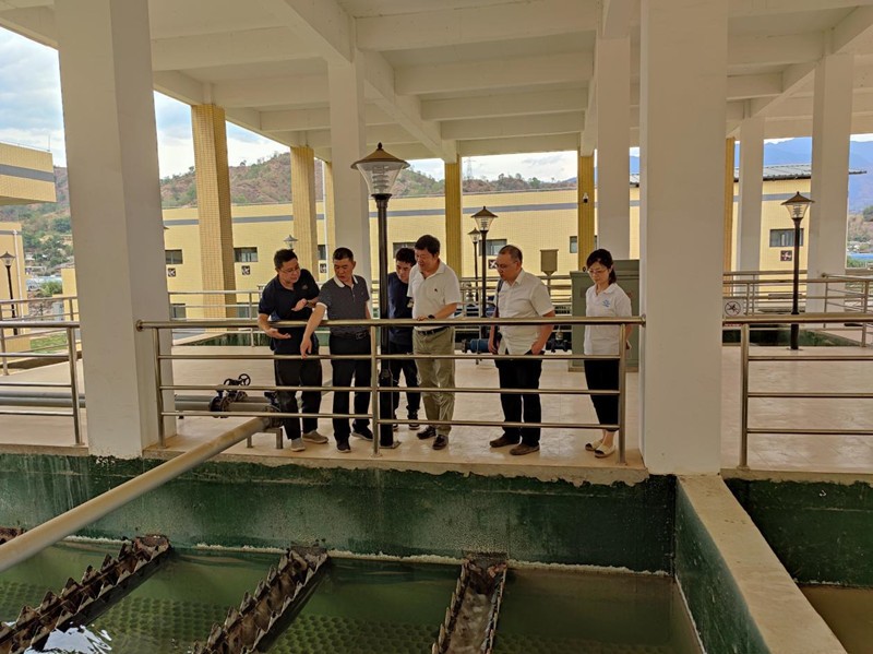 陶部长一行在项目现场对污水处理厂的工艺流程、生产管理、在线监测、废液处置以及运营台账等情况进行调研,并对安全环保、防火防汛、抗震减灾等工作进行检查。