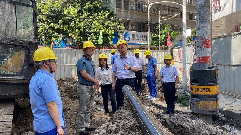 在解放中街老旧管网整改现场,杨志刚认真查看了老旧管网现场整改情况,了解了施工进度和改造工艺。