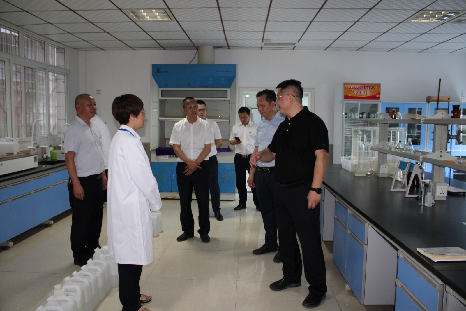 王亮总经理一行首先到河东片区,了解了河东发展规划和欣泽引灌有限公司运营模式及情况。随后到射洪水司全新改造升级的客户服务中心、生产厂区、环检公司等进行了现场调研,查看了制水工艺流程,询问水质检测保障情况,听取了刘松果就疫情防控、汛期制水、水质保障、安全检查及防灾减灾工作落实情况的汇报。王亮总经理在肯定射洪水司工作的同时提出要求:射洪水司承担30万的居民生产生活用水,面对日益突出的供需矛盾,要想尽办法,通过科学论证,统筹规划,确保生产经营稳定可持续,为射洪市的经济社会发展提供优质的供水保障。