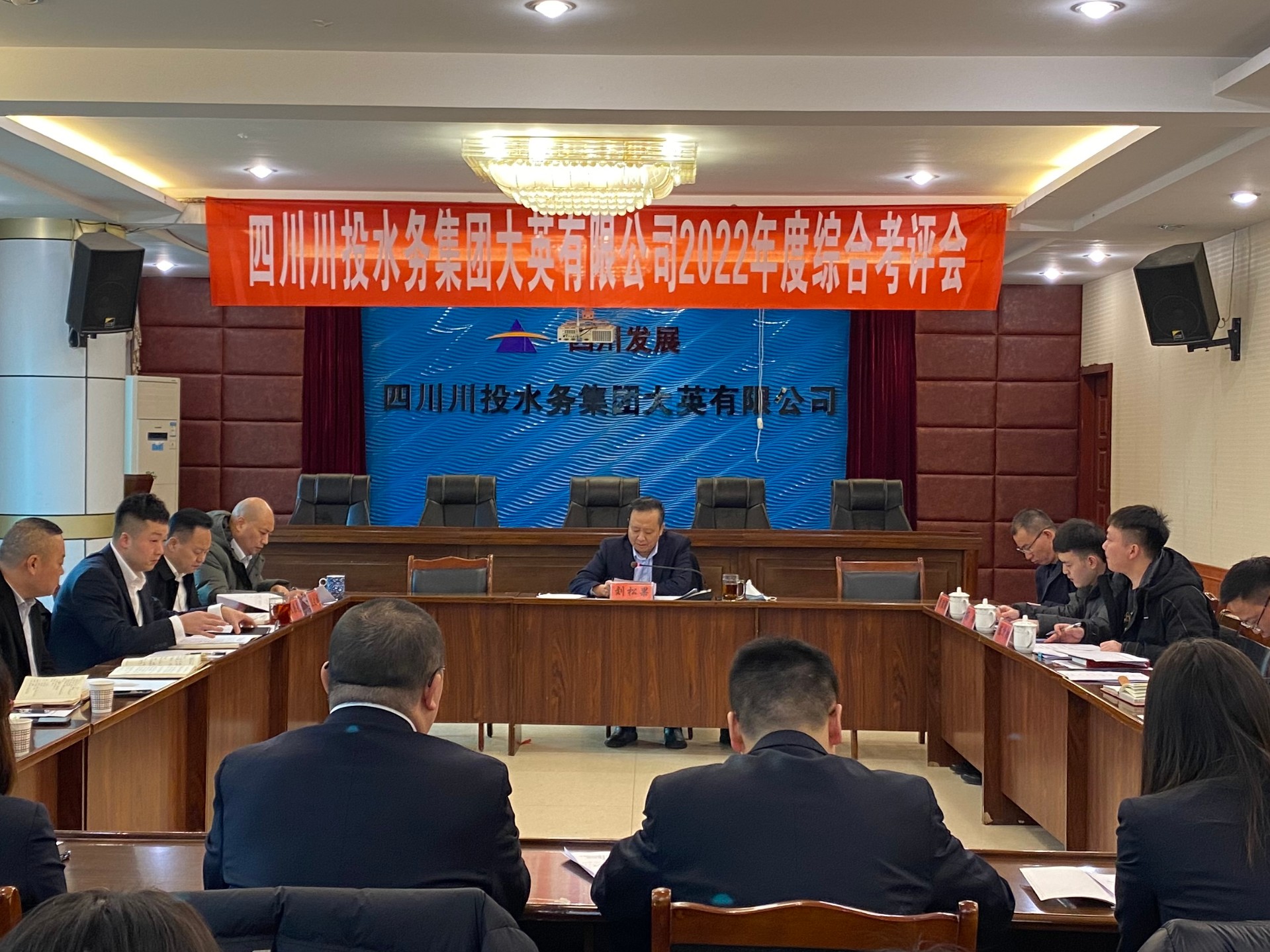 考评会上,刘总对大英水司超额完成2022年度各项经营目标任务情况给予了充分肯定。公司党支部书记、执行董事、总经理王文川,副总经理、工会主席王洪先分别就2022年工作进行了述职述廉,并进行了纪检工作专项述职。参会人员对领导班子成员综合情况、领导班子成员廉洁从业情况及党组织书记抓基层党建工作情况进行了民主测评打分,会后开展了谈心谈话。考评组分别围绕党建、管理、安全环保等工作开展情况进行进行了资料查阅和综合考核评分。