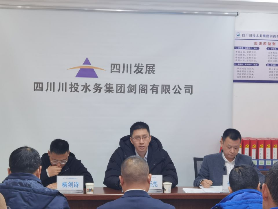 考评会上,剑阁公司经营班子成员逐一就2022年度经营管理和廉洁从业情况述职。严总对剑阁公司经营班子和全体员工一年来辛劳付出表示了感谢,同时就近期生产经营工作作出安排:一是要落实剑阁县委政府和主管部门工作要求,全力保障普安镇居民基本生活用水需求;二是要继续加强对供水水质的管理,加强原水、出厂水水质检测力度,确保出厂水100%合格;三是要贯彻落实习近平新时代中国特色社会主义思想,把宣贯党的二十大精神作为当前的首要政治任务,坚持学做结合、知行合一,为剑阁水司向新发展阶段迈进“添一把火”,为PA视讯集团不断做大做强贡献力量。