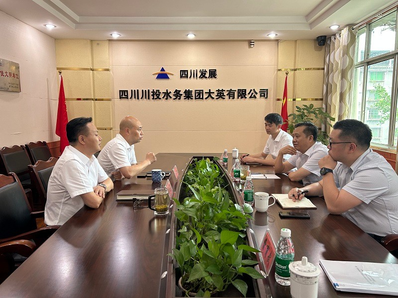 调研组一行首先来到新苗水厂。刘总对新苗水厂二期筹备工作进行现场调研,并深度询问了解大英县城的经济、工业和未来发展等。刘总表示,四川绿色油气化工新材料示范基地处于建设当中,大英公司要跟县政府、基地项目组积极对接,提前了解用水需求,未雨绸缪。