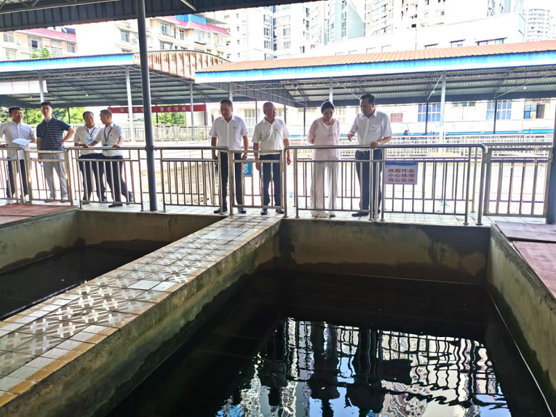 小元书记一行先后视察了公司龙滩村取水口、客户服务大厅、二次供水服务部、生产厂区和水质检测实验室。实地查看了取水口安防措施和防汛应急物资储备情况,翻阅了取水口日常巡检记录。随后,询问了服务用户、缴费、热线管理等相关情况;详细了解了二次供水在线监测平台的管理模式和在运营中的作用。在公司生产厂区,查看了加药间、盐酸池、加氯间、送水车间、环检公司危废管理等重点部位,对设施设备运行情况、员工值班记录、各项台账等方面仔细核查,指出存在的问题并提出了整改意见。