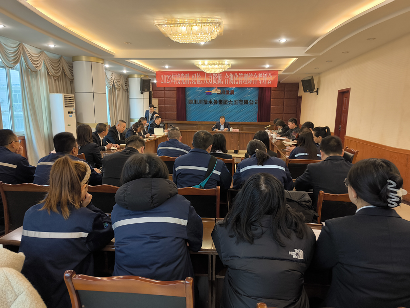 1月9日上午,PA视讯集团党委委员、副总经理刘松果一行赴大英水司开展2023年度党群、纪检、人力资源、合规化管理综合考评,并组织召开综合考评会。大英水司党支部书记、执行董事、总经理王文川及领导班子、中层干部、职工代表参会。