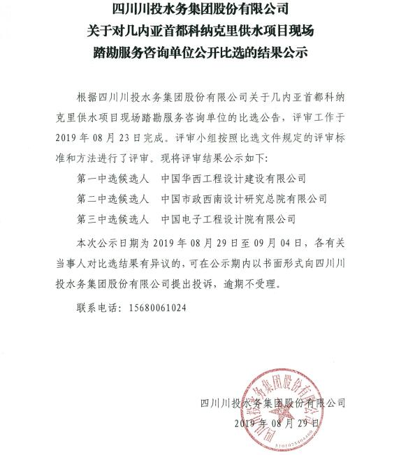 上一条:四川PA视讯集团股份有限公司 关于几内亚首都科纳克里供水项目现场踏勘服务咨询单位比选公告