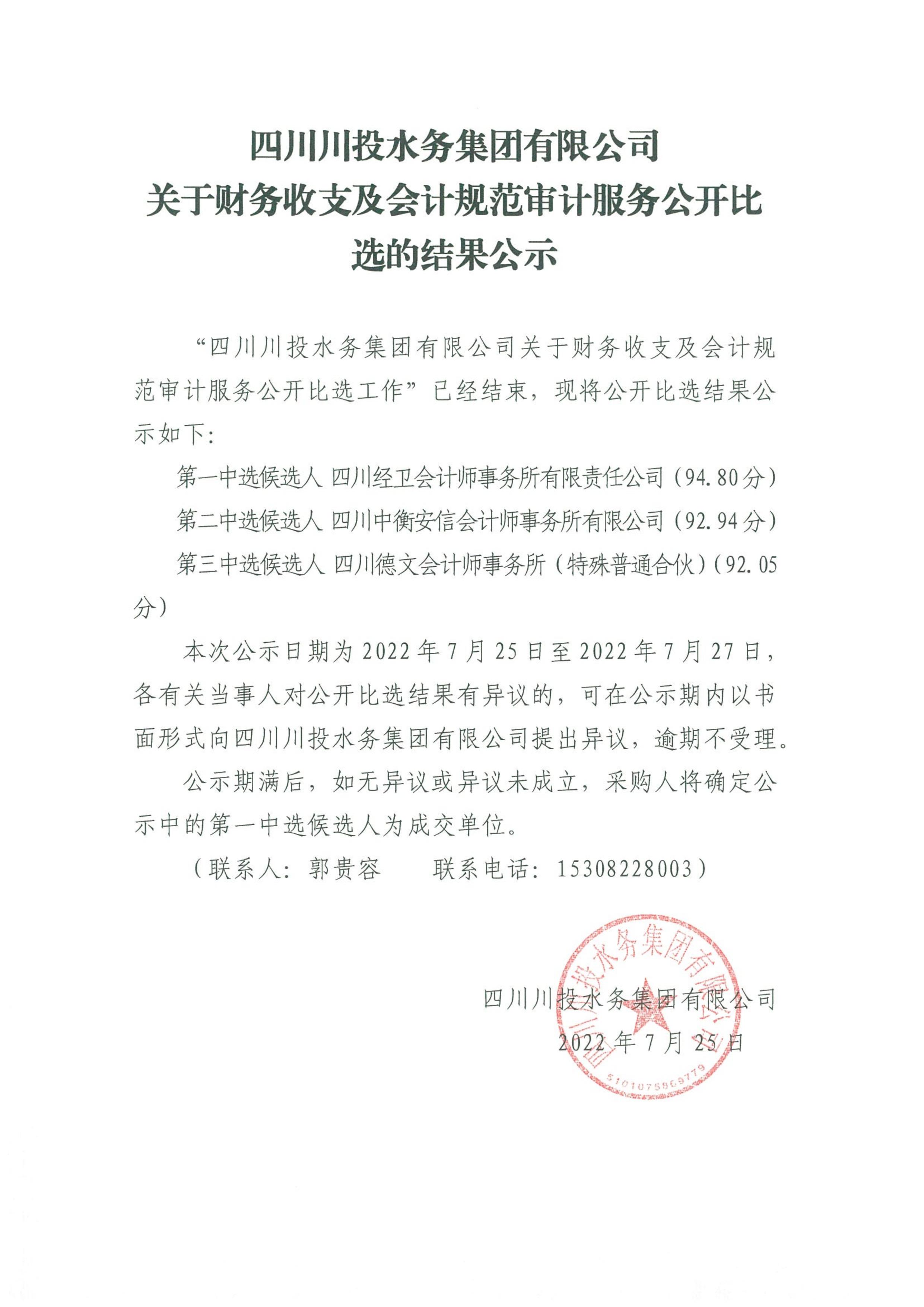 PA视讯关于财务收支及会计规范审计服务公开比选的结果公示