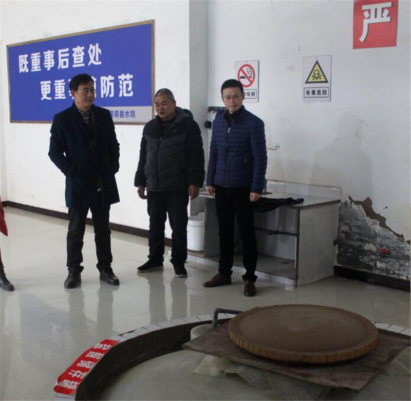 12月26日,由公司总经理龚庆带队、副总经理毕雪桃及安全生产办公室成员一行到生产厂区的取水泵房、变压器、加压泵房、盐酸储药间、收费大厅、财富中央17栋地下车库、双溪水库应急泵房等处进行安全生产隐患排查暨节前安全大检查工作。在财富中央17栋地下车库,安办一行详细了解了该小区二次供水设施设备情况,询问了相关室外供水管道敷设情况。经检查,施工现场施工行为规范、取水泵房、加压泵房的水泵机组运行正常、两台400KVA变压器正常运行、一台200KW的柴油发电机也定期进行维护保养、双溪水库应急取水泵房设施设备完好无损,盐酸储药间的储存罐暂无发现破损情况。公司建筑物、构筑物结构安全,公司周边围墙、边坡、堡坎地质灾害防范措施到位。