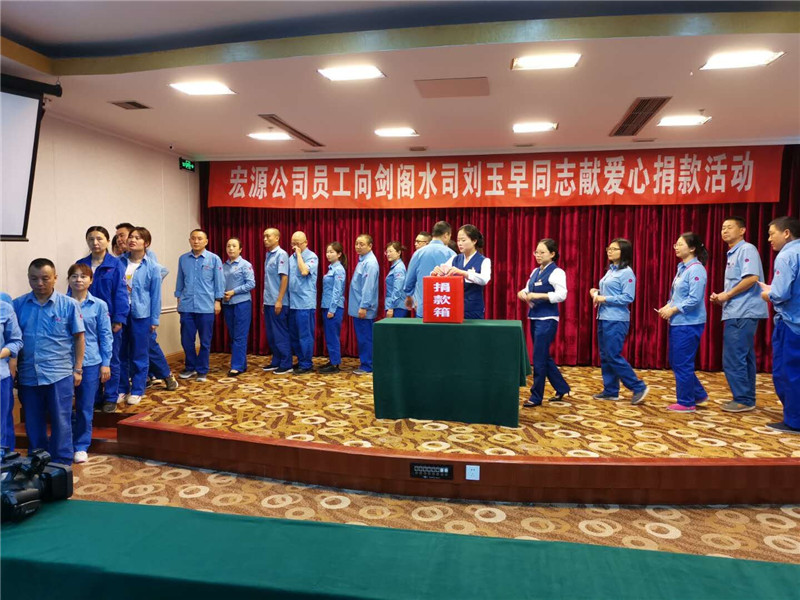 疾病无情,宏源有爱。2019年5月18日上午11:00,公司在11楼大会议室举行了“向PA视讯剑阁公司刘玉早同志捐款”活动,公司领导带头捐款,不当班的员工也早早到场,纷纷伸出援助之手,慷慨解囊。而当天因在值班生产不能到现场捐款的员工已经于17日晚上通过微信进行捐款,公司204名员工共筹集善款53161.00元。按照公司党委书记、总经理李旭东的要求,当天下午14:00,公司工会主席倪沛林、综合部经理刘平等一行驱车300多公里将所捐善款亲手送到PA视讯剑阁公司党支部书记、总经理何天政的手中,转达了宏源公司全体员工对刘玉早同志的关心和祝福。