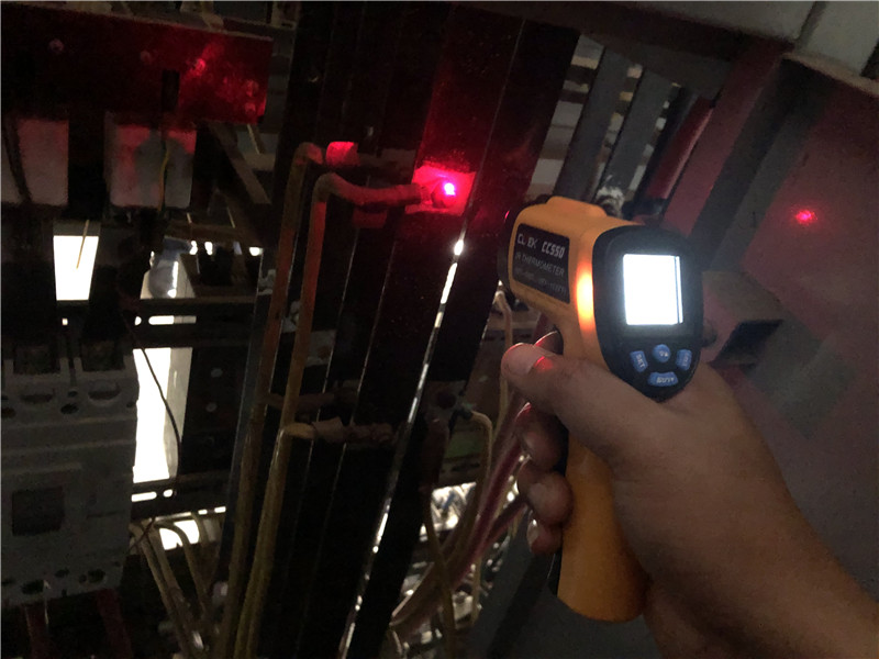 检查组逐一对办公楼、小区配电室和太吉水厂区域进行了用电专项检查。在检查中及时发现办公楼6楼空开进出接线桩头未用线鼻导致温度过高;小区配电室空开出线端温度过高达到107℃、进线母排与空开接线处温度达到153℃。检查组当即要求供电公司技术人员进行维修处理。