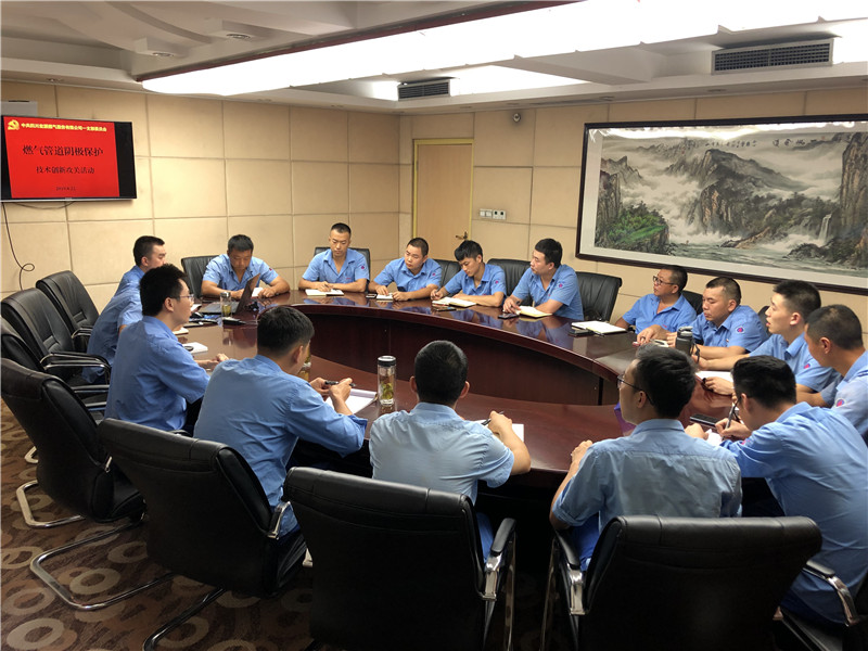 2019年8月22日下午,宏源气司一支部在5楼会议室和燃气物资加工房组织开展了“燃气管道阴极保护”技术创新攻关活动。活动由支部书记何梓辉主持,支部委员、党员技术骨干、青年学习小组全体成员、安装一队全员共计16人参加了活动。