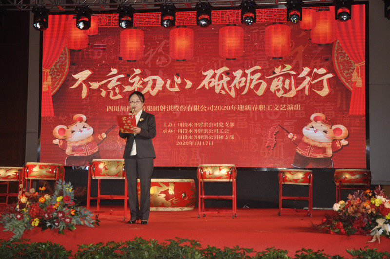 2020年1月17日晚,射洪水司“不忘初心、砥砺前行”职工迎新春文艺汇演在旷逸酒店九楼永逸大厅举行。市委常委总工会主席黎云凯、市总工会党组书记、常务副主席吴烨、团市委书记钟思翰、市住建局机关党委书记杨晨出席了晚会,公司全体员工及家属共计200余人共赏视听盛宴。