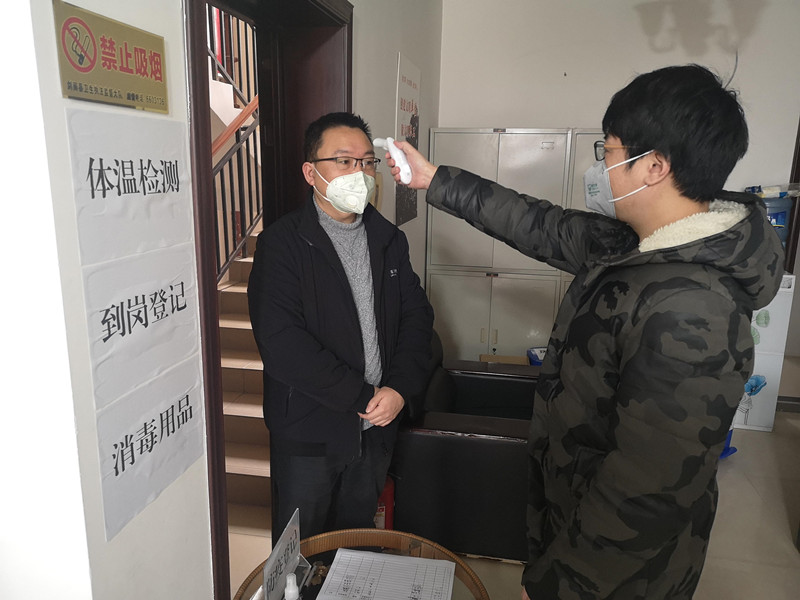 三是“测”:严把出入监测关。所有办公区域均设置了健康监测点,对外来人员、车辆进行体温等身体状况测量,严防漏网疫情人员通过。