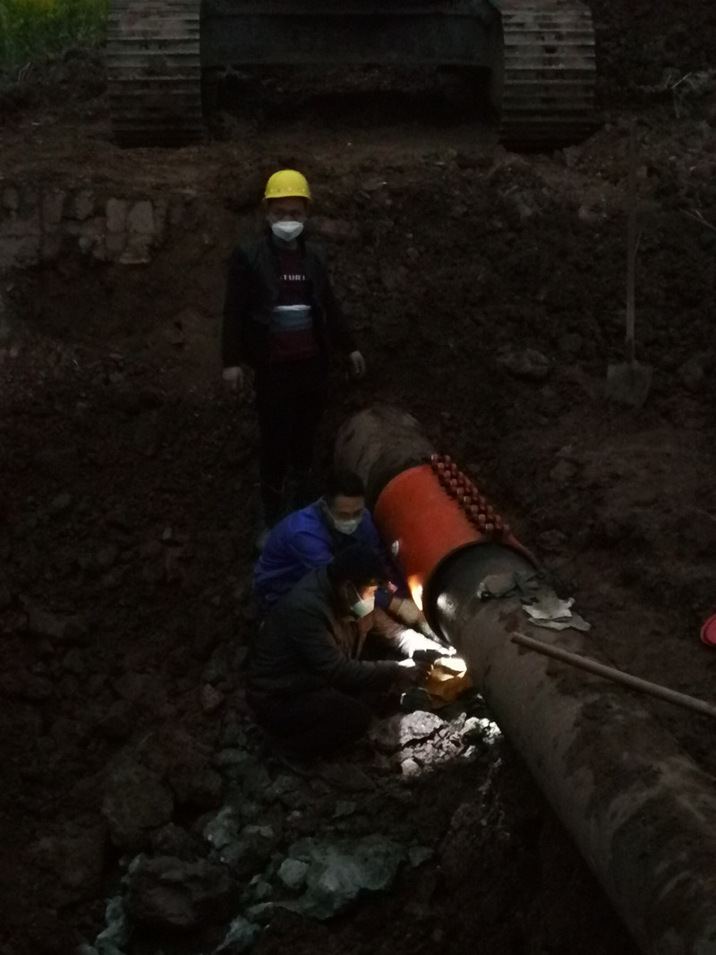 2月27日下午17时许,公司值班电话接到郪江新城施工方报告,因施工紧急,未事先向我司询问供水管网走向而造成管道挖漏。公司接到报漏后,立即上报值班领导,经抢修人员第一时间赶到现场了解、查看,DN400球墨铸铁主管挖漏3个漏点,将会影响郪江新城片区涉及青龙湾小区、余粮村安置房和附近幼儿园、楼盘等共计3000余户居民在疫情期间“宅”家正常用水和社区消毒工作。