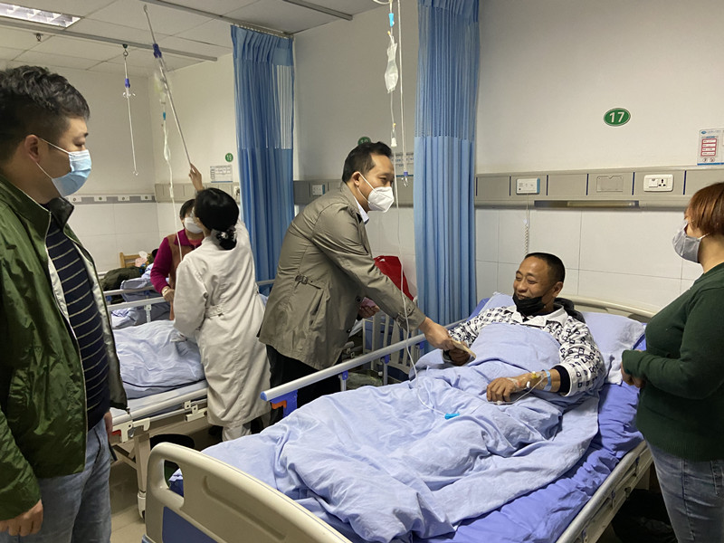 病房里,总经理刘松果详细了解了向东的病情和治疗情况,关心他在住院期间的生活。叮嘱他和家人要谨遵医嘱专心治病,保持乐观心态,相信有党、有扶贫干部和各项扶贫政策的保障,并积极配合治疗,一定能战胜病魔,早日恢复健康。