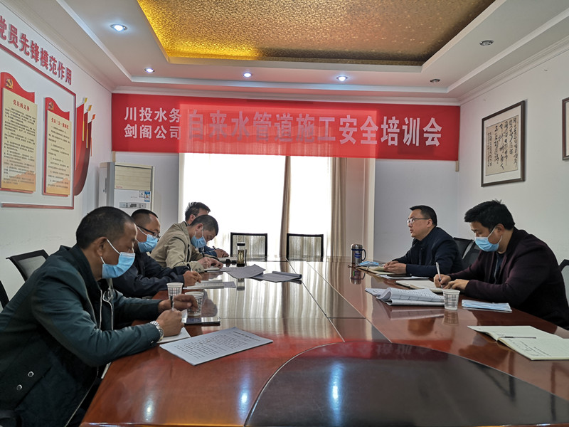 4月14日,剑阁水司召开自来水管道施工安全培训会,副总经理韩名泉主持会议,安全环保部部长白桥、下寺客户服务部副部长朱强、效能办唐晓龙、客户服务中心张代露以及施工方代表杨成武、蒲怀平参加了会议。