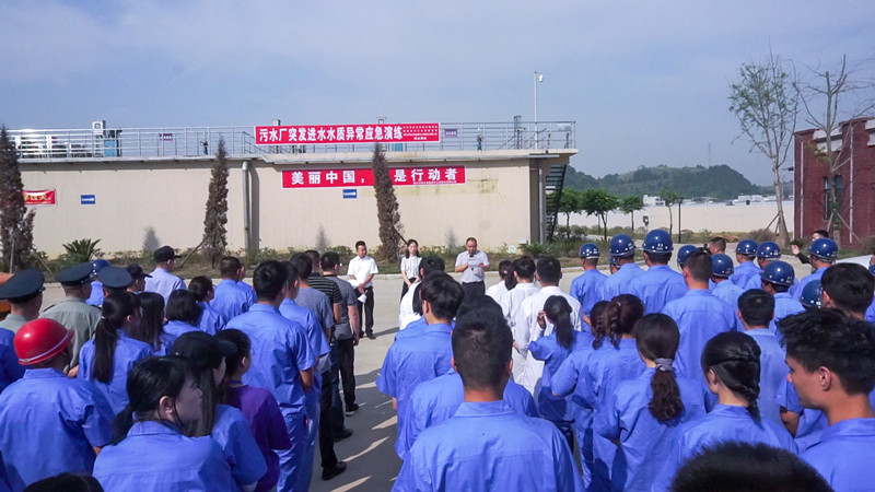 2020年6月5日上午8时10分左右,在公安交警警车的引导下,三辆环境监察车、三辆应急抢险车急速驶向中江县高新区污水处理厂,中江县住建局、生态环境局、PA视讯中江水司联合开展2020年污水处理厂突发进水水质异常事故联合应急演练。