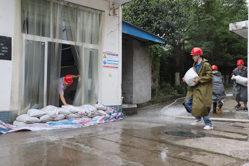 随后,模拟在天气突然强降雨的情况下,接到险情报告后,按照演练方案立即启动防洪、防汛、防涝应急预案。值班人员发现险情后,立即向部门负责人报告,参演人员迅速领取防汛器具并用沙袋进行防护,阻挡洪水进入泵房。
