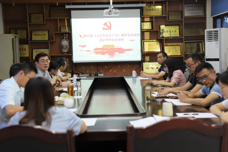 铭记历史,展望未来。9月3日上午,在中国抗日战争胜利纪念日暨世界反法西斯战争胜利75周年纪念日之际,荣县水司党支部组织开展了以“从红歌《人民军队忠于党》解析党的领导的必要性和重要性”为主题的支部书记讲党课活动,公司党员、预备党员及入党积极分子共20人参加了活动。
