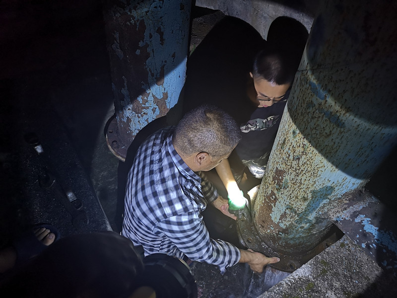 9月4日凌晨0时,随着水厂负责人李明远一声令下,全体员工按照既定清洗方案,女员工负责照明、警戒和后勤工作,男员工挽起裤腿、拿着扫把、铁锹、刷子等清洗工具,负责深入清水池内部进行清洗。安全环保部部长白桥受总经理何天政委托,负责检查清水池内余氯和密闭空间作业的操作流程是否正常以及清洗现场的安全监管,因清洗清水池前已经安装大功率鼓风机和排气扇对清水池内余氯进行了排空,确保了员工的人身安全。