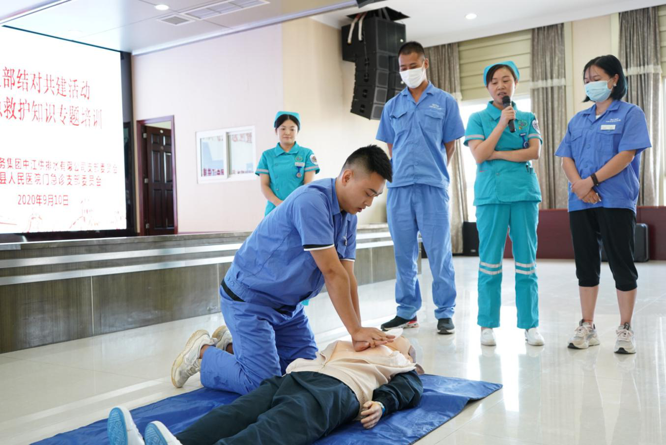 为深入贯彻落实川投集团党委“双争双创”和PA视讯集团党委“双争双创双促”活动要求,以及贯彻执行“安全第一,预防为主”的安全指导方针,通过急救知识培训,提高职工应急救护能力。9月10日,中江水司党支部与中江县人民医院门急诊支部委员会开展结对共建活动,联手为中江水司100余名员工进行了应急救护专题培训。本次活动由中江水司常务副总经理秦荣主持。