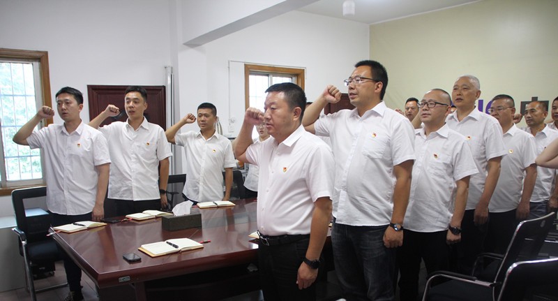 “我志愿加入中国共产党......永不叛党。”下午2点40分,庆“七一”暨支部党员大会在党员们铿锵有力的宣誓中拉开了序幕,全体党员举起右手,庄严宣誓,铮铮誓言表达着全体党员坚定不移的政治信念和矢志奋斗的坚强决心,宣誓着听党话、跟党走的坚定信心。