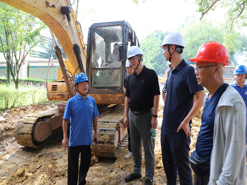 7月31日上午,为确保施工项目的顺利推进和质量安全,龚总一行来到荣县中学施工现场,先后察看了各施工区域,认真听取了项目负责人和现场管理人员的工作汇报。他强调,荣县中学供水主管迁改增能工程是公司的重点工程,在工程实施过程中要做好“三控三管一协调”工作,即质量控制、进度控制、成本控制、安全管理、合同管理、信息管理、关系协调工作。