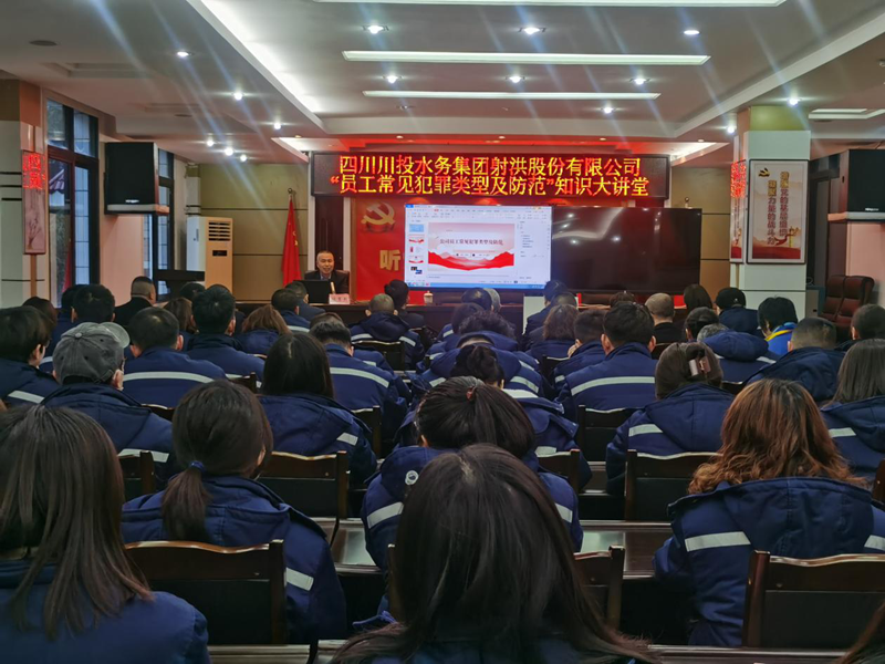 2月21日下午,PA视讯射洪公司在三楼会议室开展“员工常见犯罪类型及防范”普法知识专题讲座。此次讲座由公司常年法律顾问张翠烈主讲,公司领导班子、中层管理人员及各部门员工共80余人参加。
