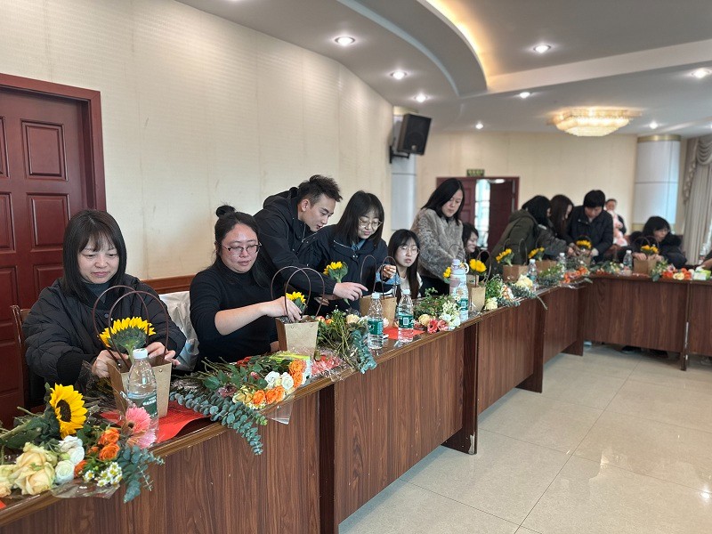 活动现场,花香四溢,气氛温馨。专业花艺老师为女性员工们详细讲解了插花的基本技巧、花卉的寓意以及日常养护方法。在老师的指导下,大家纷纷动手挑选花材、修剪枝叶、搭配色彩,用心创作属于自己的花艺作品。每一束花都凝聚了女性员工们的巧思与创意,展现了她们对生活的热爱与对美的追求。