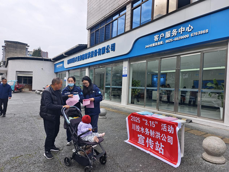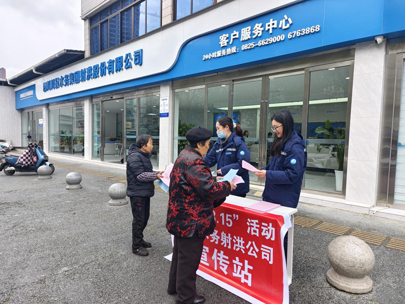 3月15日是国际消费者权益日,为了共建诚信社会,进一步提升公司服务水平和市民满意度,PA视讯射洪公司积极开展了以“保障水质安全、优化供水服务”的宣传活动。