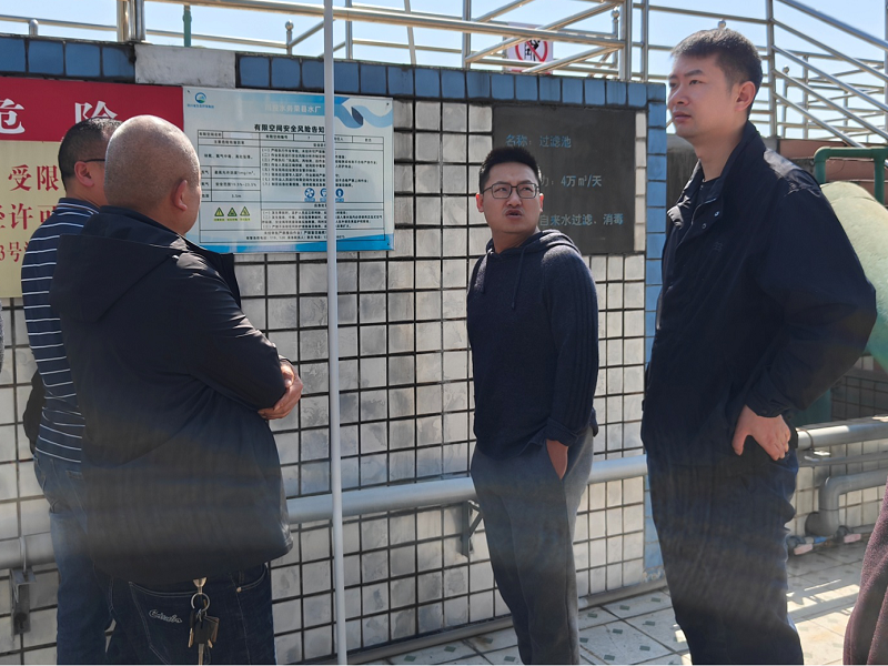 杨部长一行抵达公司后兵分两路展开检查,第一组由杨部长带领直接深入生产厂区,重点检查了技改工程区域消防备案问题、清水池和滤池的具体情况以及有限空间风险告示牌设置情况,并详细检查了有限空间安全防护用品(三角救援架、空呼机、检测仪)的有效期和维护状态;同时另一组仔细查看了有限空间相关的安全作业票、安全作业安全交底记录审批流程、应急演练和应急预案是否完善。针对清水池和滤池有限空间告知牌内容,杨部长指出需进一步规范标识内容,按照当地政府明确规定的规章制度对有限空间进行标识,明确风险等级及应急措施,确保信息清晰醒目。