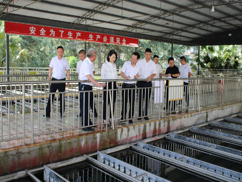 在公司董事长李至彬和全体领导班子陪同下,钱洪杰先后实地查看了制水工艺、过滤车间、消毒设备以及中控室等关键区域。钱洪杰详细询问了水厂的日供水量、自来水价格、水源地保护措施、水质净化工艺流程、设备运行维护等情况,并认真查阅了水质检测报告和安全生产管理台账。
