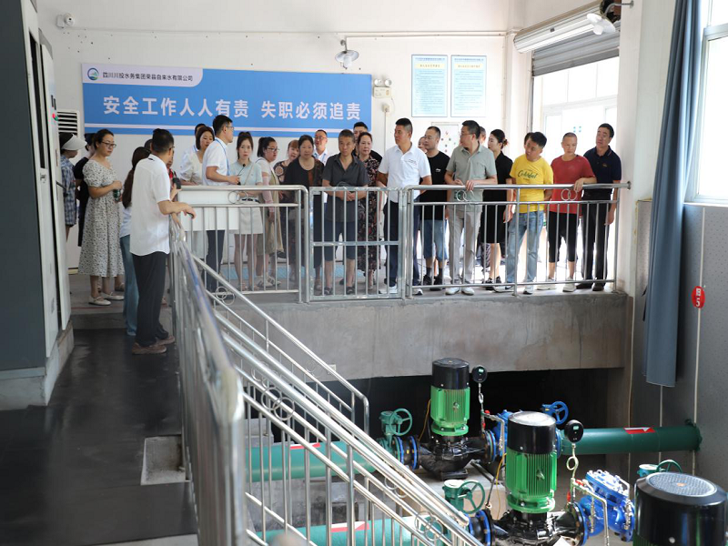 随后,参会用户代表顶着烈日酷暑,实地参观了水厂的取水泵房、技改工程现场、加压泵房等供水设施设备,用户更为直观地了解了自来水生产的全过程生产工艺流程以及在生产过程中的各项成本构成。